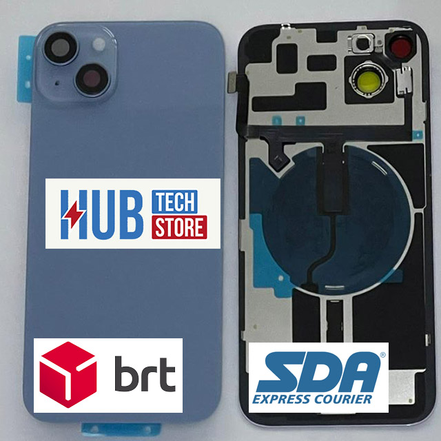 BACK COVER SCOCCA POSTERIORE FRAME VETRO PER IPHONE 14 CON MAG + FLASH + WIRELESS – BLUE