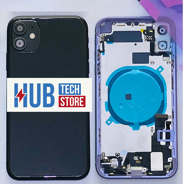 COVER SCOCCA POSTERIORE COPRI BATTERIA per APPLE IPHONE 11 COMPLETA+FRAME + FLEX – NERO, COMPLETO DI CARRELLO SIM + TASTI POWER E VOLUME ESTERNI + FLAT POWER E VOLUME + FLAT RICARICA + BUZZER + FILTRI ANTI POLVERE INFERIORI